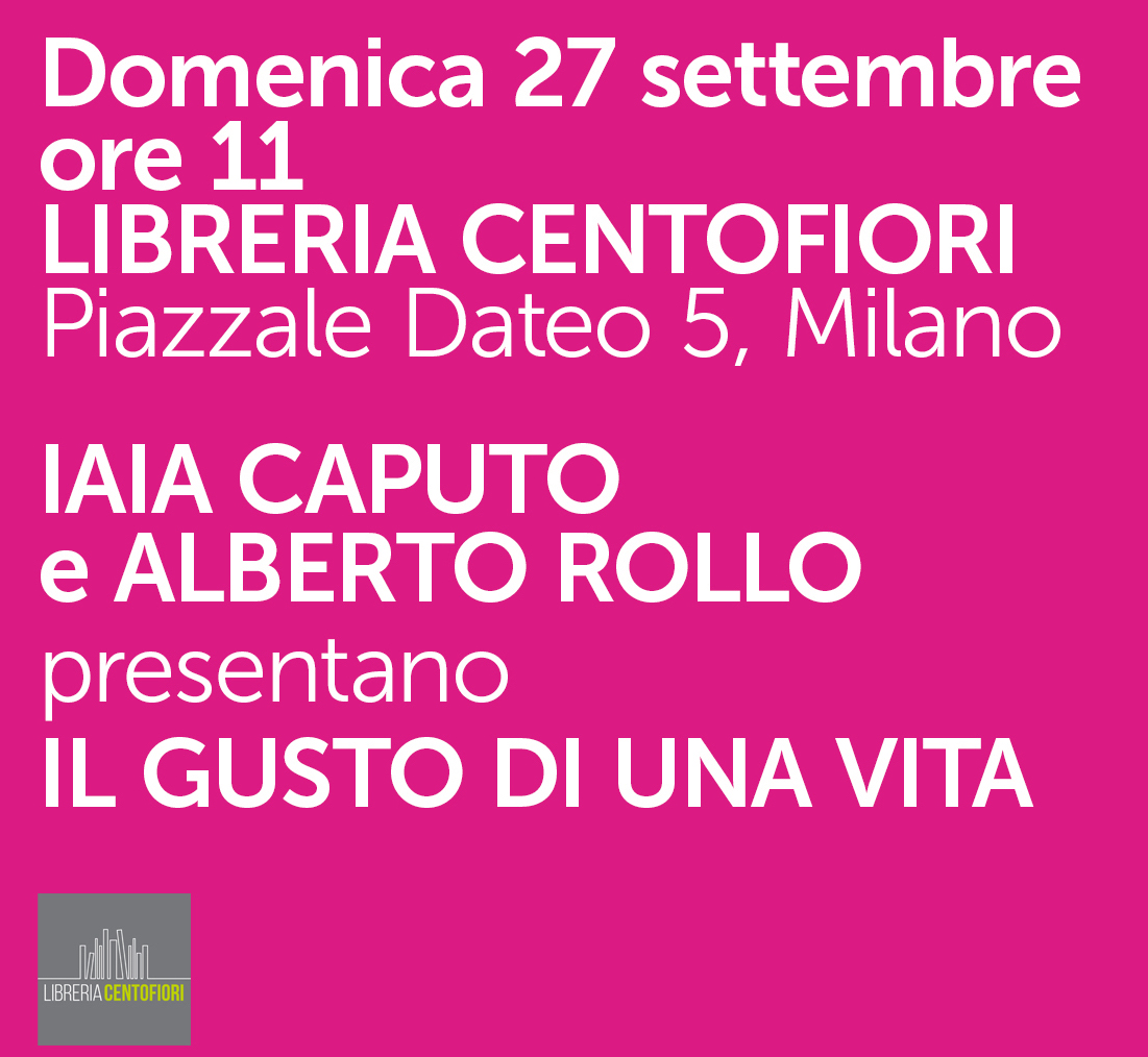 Domenica 27 settembre vi aspettiamo a Libreria Centofiori di Milano per la presentazione di Il gusto di una vita, il nuovo memoir di Iaia Caputo, nelle librerie dal 24 settembre. Con l'autrice interverrà Alberto Rollo. Appuntamento ore 11 presso la Libreria Centofiori, Piazzale Dateo 5, Milano. Vi aspettiamo numerosi!