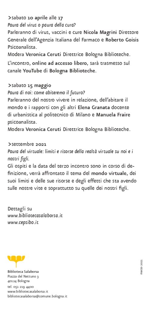 Pietro Roberto Goisis, autore di Nella stanza dei sogni, partecipa all’evento Paura del virus o paura della cura? con Nicola Magrini, Direttore Generale dell’Agenzia Italiana del Farmaco, modera Veronica Ceruti Direttrice Bologna Biblioteche. L’incontro, online ad accesso libero, sarà trasmesso sul canale YouTube di Bologna Biblioteche.