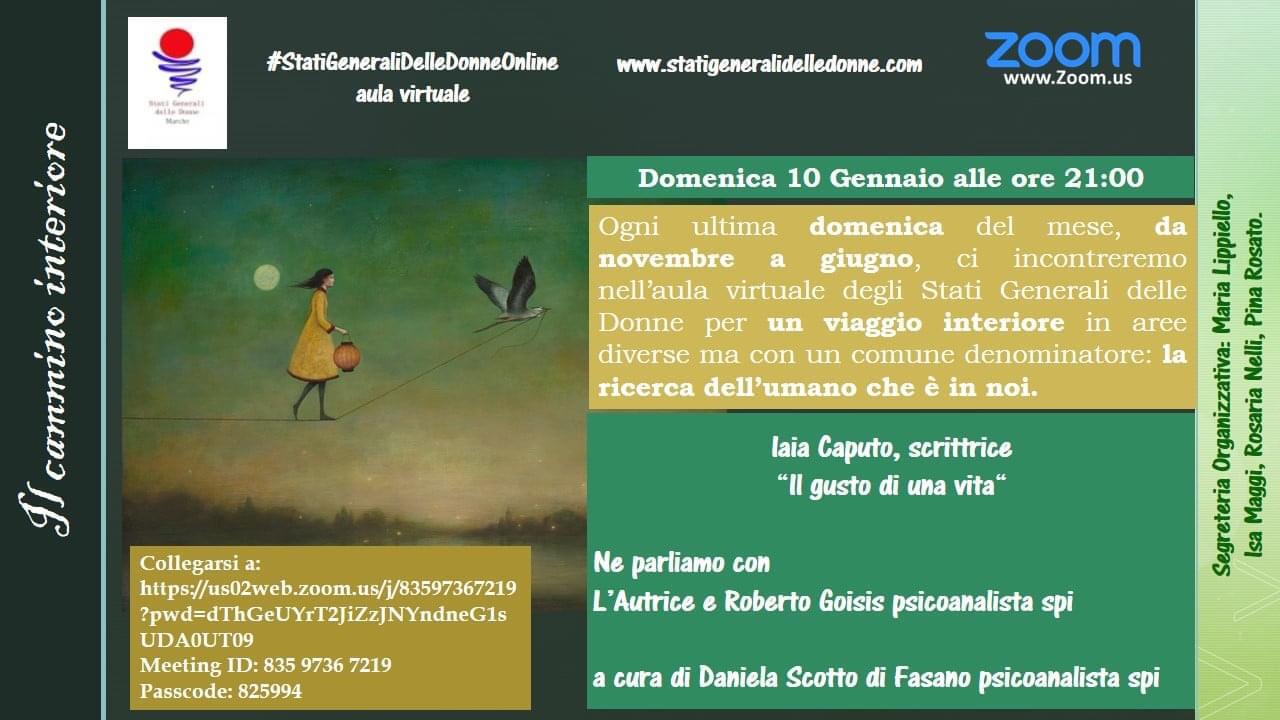 Iaia Caputo e Roberto Goisis alle ore 21 presentano il libro "Il gusto di una vita", sul canale Zoom di Stati Generali delle Donne, nell'ambito degli incontri diretti da Daniela Scotto di Fasano, psicoanalista SPI.